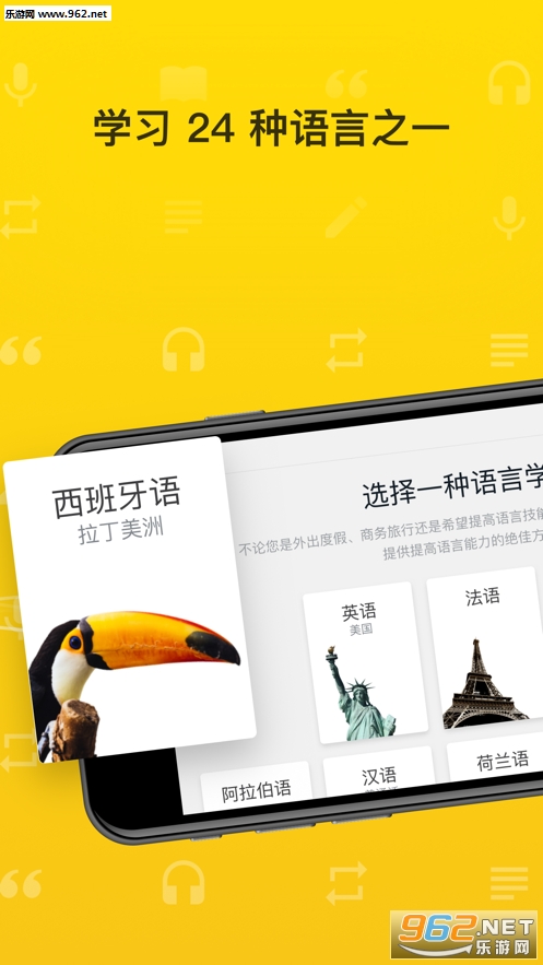 一款非常好用的语言学习软件,软件使用语言识别来辅助你的发音,通过动态的沉浸式提高你的学习程度,软件中还有着更多丰富的内容等待你的探索,推荐给喜欢语言学习的用户。