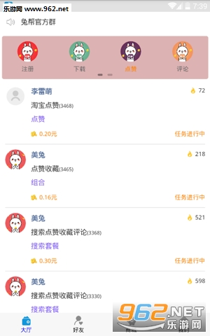 兔帮是一个抖音、快手等点赞,评论赚零花的平台