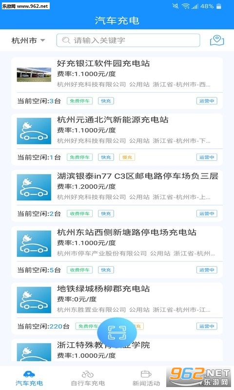 2、汽车和自行车充电板块:支持按城市、站点名、地图搜索充电站,点进充电站可查看桩状态、枪状态、费率等实时信息,点击空闲的枪或插座进行充电。充电站支持收藏和地图导航功能;