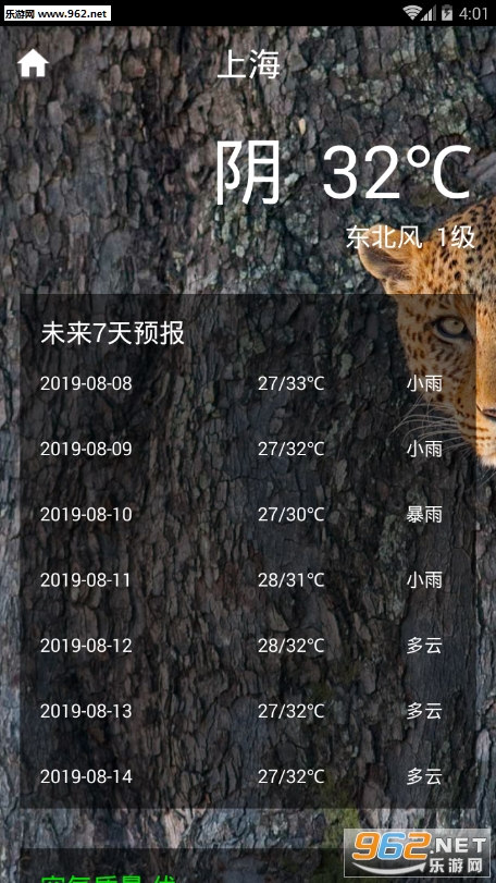 5、空气污染指数:小时级空气污染指数监测和全国空气质量排行榜,更有未来7天空气指数预测,关注空气质量,关爱你的健康。