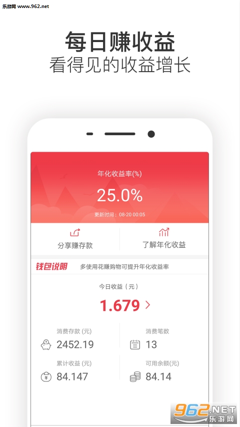 2、用户购物消费存入花赚钱包,每天产生利息收益,利息收益可随时提现,帮助用户赚钱;