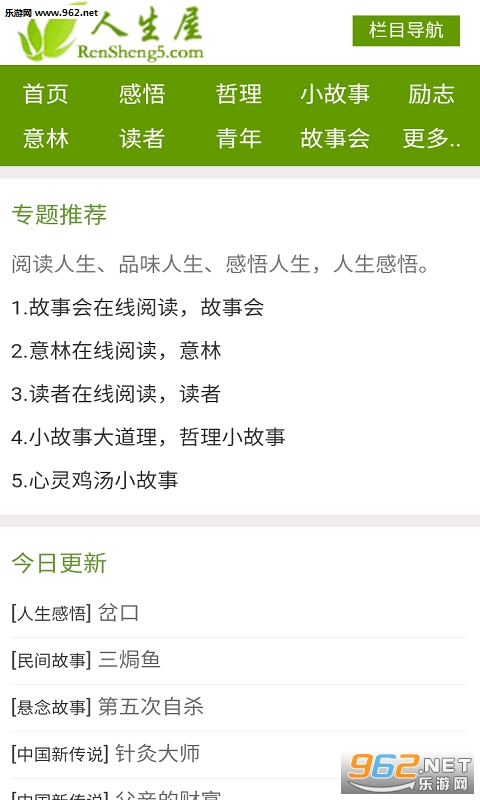 《人生屋app》是一款精品内容阅读app,可以阅读人生的感悟,各种哲理小故事,还有很多的励志故事。