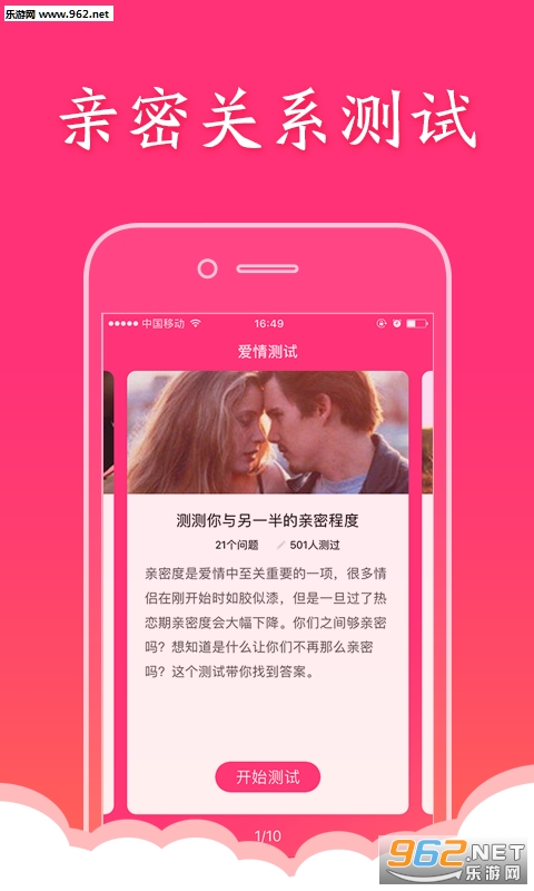 《2026爱情测试题女生版app》是一款趣味测试类手机软件,能够为大家提供爱情智商测试,亲密关系测试,桃花运测试,单身原因测试等等,让你给轻轻松松了解自己的爱情观,让自己成为恋爱达人,非常有趣哦,快来下载吧!
