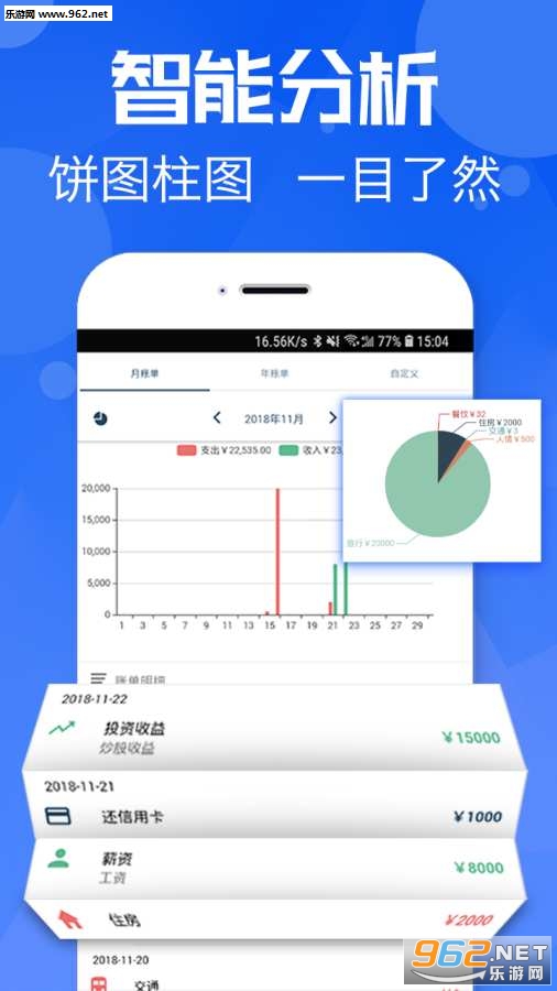 浏览每个月的消费饼状图、柱状图,您就可以知道自己的消费信息;