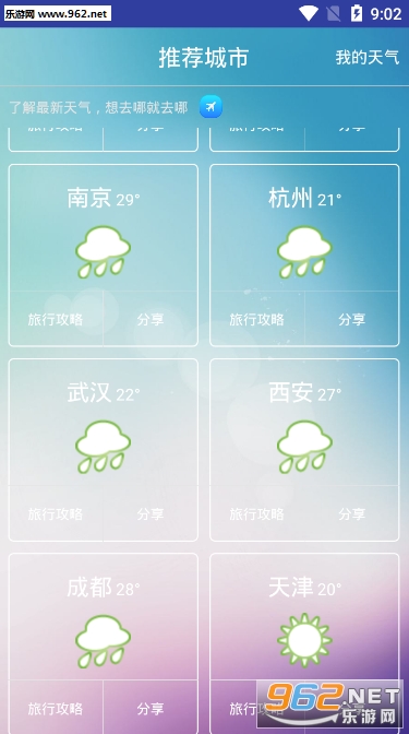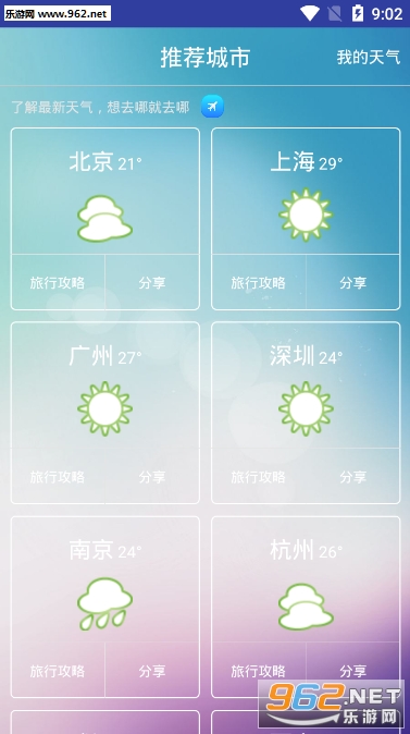 一款简洁清新的天气预报软件,可查看全国主要城市的天气信息。包含了3000多个县市的实时空气质量指数;并加入雾霾预警。高精度的天气效果,实时的天气预报数据,全新背景页设计,高品质的体验。主页涵盖了主要天气数据、人性化的操作体验,让您随时随地知晓近期天气详情,可查询未来一周天气预报和生活指数,让您轻易的掌控近期温度变化,便于及时增减衣物,轻轻松松享受生活!