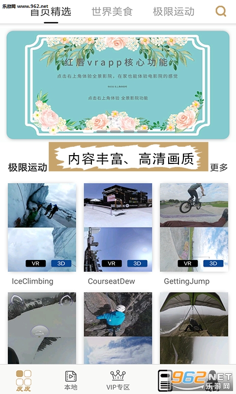 《皮皮vr》是一款搞笑视频AR分享app,提供高清的3d视频内容,带你体验全新的VR体验,支持本地VR视频播放。