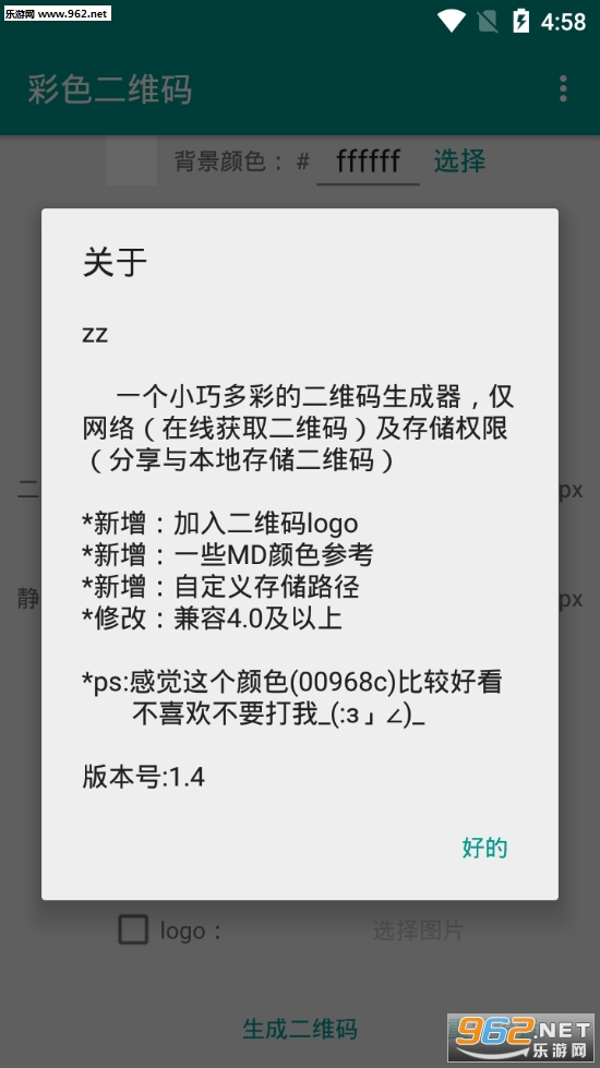 《彩色二维码》是一款快速制作二维码的手机app,可以自定义二维码的颜色以及添加二维码时的logo等等,定制自己个性二维码。