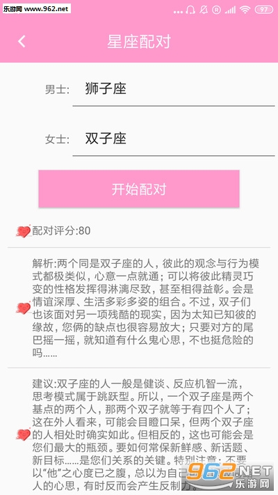 -星座配对:测算你和恋人之间的爱情指数,心理分析,配对解读。
