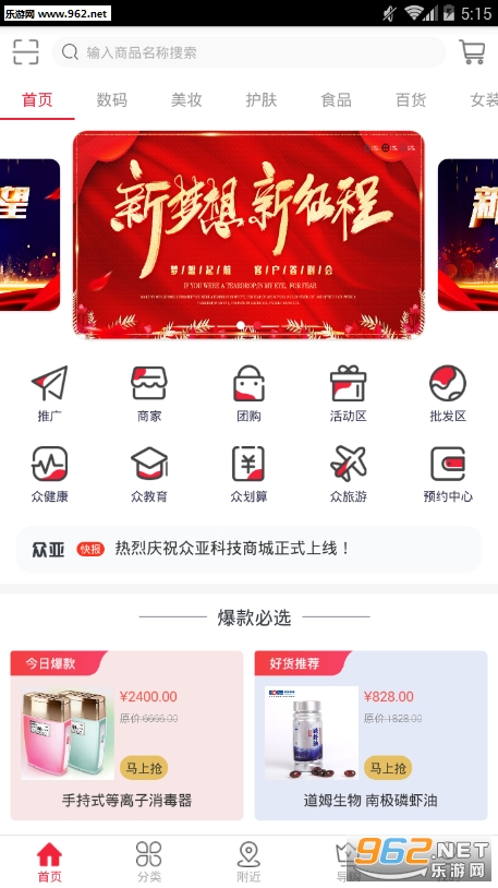 众亚商城APP是一款集B2C、o2o于一体的购物商城,为客户和商家创造便利快捷的购买和入驻条件。商品分类多元化,用户可以随意选择自己需要的产品;商家入驻,流程简单。