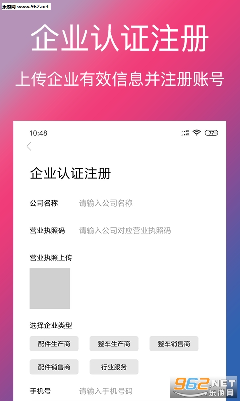 4、企业认证注册:上传企业有效信息并注册账号