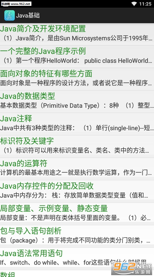 本软件可以快速带你进入学习java的世界,根据不同学习要点归类;可以帮助你快速学习对应知识,快速阅览所需知识点,作为考试或者学习复习的手上阅读品。不管是新手还是开发人员,备此app可以时常进行回顾学习!不要停止你学习的脚步!