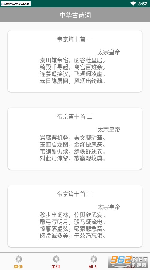 一款仅有3M左右的软件中竟然能有这么多内容,就想文字的载体从石头到竹简再到纸,但是其中蕴含的知识和文化却是源远流长,在手机中有这么一款软件,随时都可以看一眼,推荐给喜欢诗词的用户。