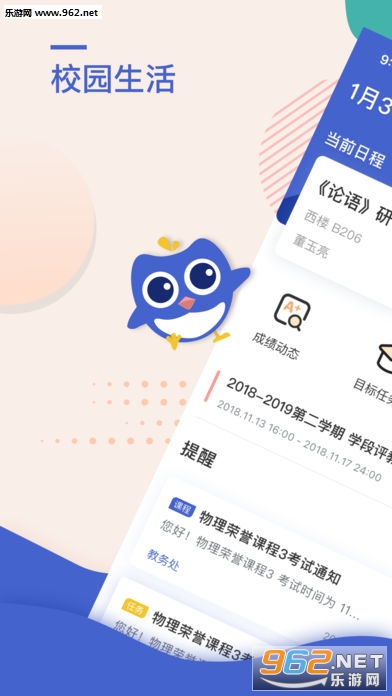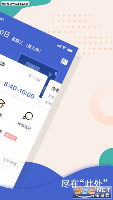 此处(校园生活)是一款非常不错的校园生活软件。用户通过此处app就能够了解学校里的大小事件,不管是学校通知,还是学校活动都能够看得见,同时用户还可以查询自己的成绩,查看分析报告,是一款非常方便的校园软件。欢迎下载~