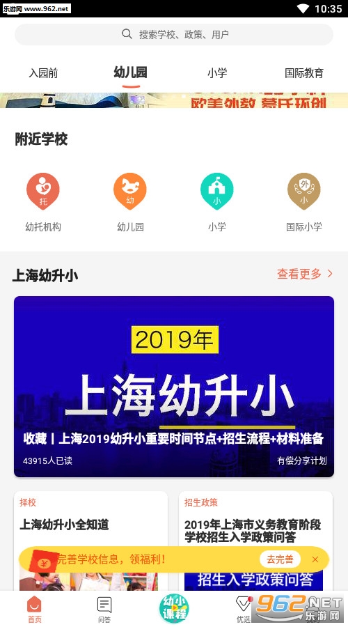 择校内容的不仅丰富且实用,提供择校经验、政策解读、升学讲座、面试模拟测评、在线课程学习、学校开放日活动等干货内容,且同龄父母在线问答、在线分享孩子的择校、教育等各方面的话题。