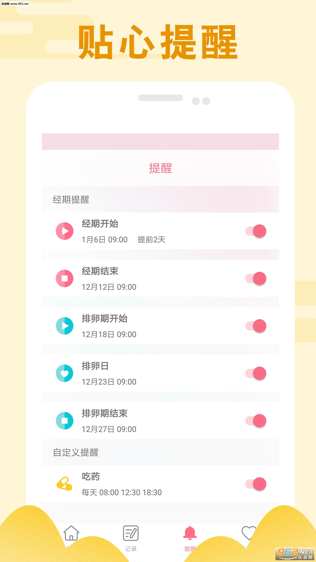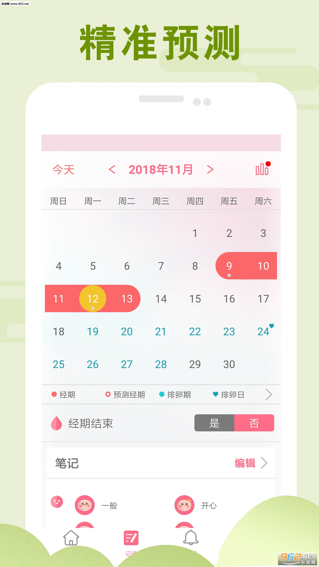 一款专为女性设计的经期计算器,可以通过科学方法预测、跟踪并记录您的月经周期(大姨妈)和排卵期。这款免费的女性健康应用程序可以在您的下一次月经、PMS(经期综合征)和排卵期之前向您发送提醒,让您在大姨妈来临前做好准备,避免尴尬。还会根据您的身体情况向您发送呵护建议以及经期相关提醒,妥妥的女性经期健康小管家。