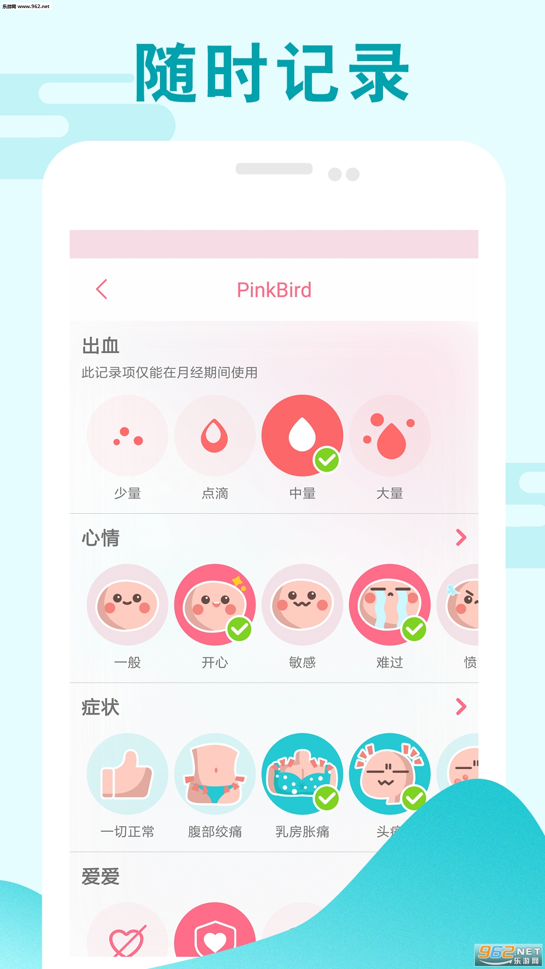 记录心情、血量、症状、性行为等日常数据