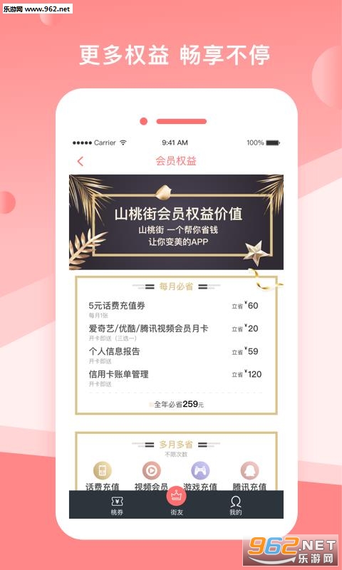 山桃街APP是一款购物省钱返利平台,专注于为消费者带来价格折扣与购物返利福利,让消费者能够体验到实惠购物的快乐;所谓的省钱就是所有商品资源都能领取专属优惠券,优惠券领取后系统就会自动将商品价格减去优惠券面额代表的数值,让用户轻松购物省钱;而返利则是按照商品上标注的比例返还现金,让用户能够再次得到优惠,这样用户就能享受到省钱带来的快乐感受了;平台推出会员业务,用户只需要在线付费开通会员就能享受到话费充值、视频会员、游戏充值、腾讯充值等大量特权,会员不仅可以从购物上带来福利还能给予你其他方面的特权。