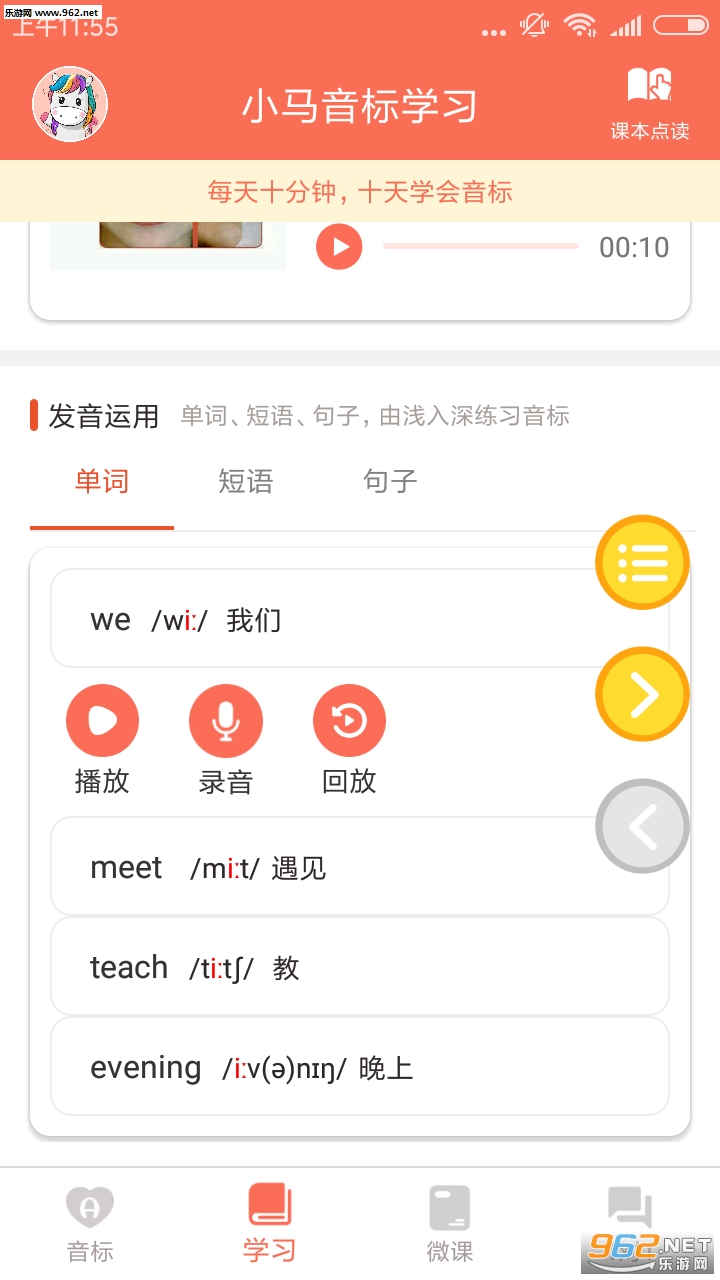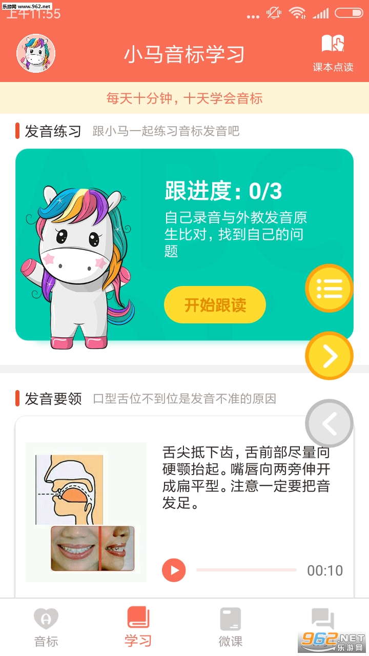 小马音标学习是由一线中小学教学名师团队和移动智能应用公司强强联合,推出的专注中小学英语音标学习的软件。