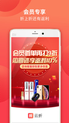 云折APP让用户可以在线享受到非常优质的购物折扣服务,您可以在这里轻松的找到各个打折的商品,折扣力度飞非常的大,让您在每一次的购物过程中都可以节省一半以上的消费资金,是你省钱购物最好的选择;APP现在还为用户推出了许多的购物活动,您可以在线参与到购物活动中,每天都可以发现不一样的省钱福利,让自己购物可以变得非常的有趣;会员还可以享受各种购物返利活动,只要在平台内完成购物交易就可以获得返利,购的越多获得的返利越多;别再犹豫赶快来下载使用吧!