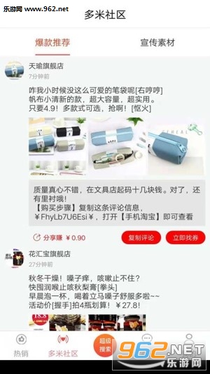 分享多米社区内素材就能获得推广佣金,复制评论亦可赚钱;