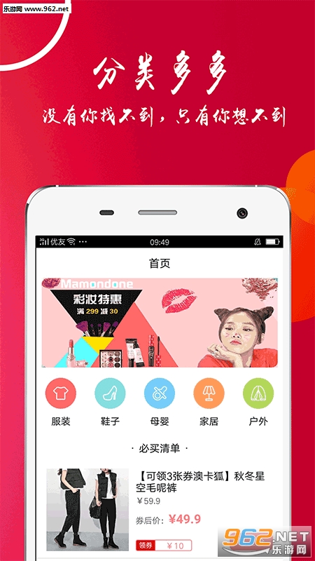 1、手机网购,海量商品,实时更新上线;