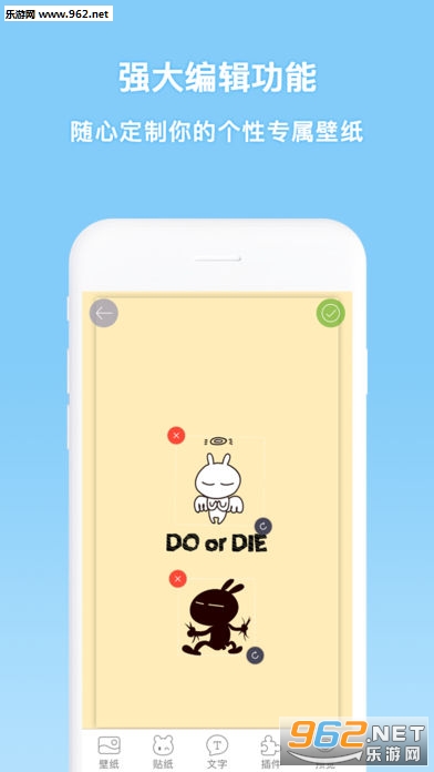 【素材丰富】:各种高清壁纸、贴纸、字体,还支持导入相册相片