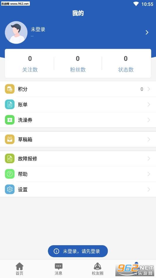 消息模块:显示个人校友圈相关的消息通知、系统通知等、校友圈是学生互动交流的功能模块。
