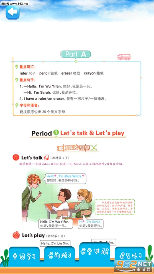 《三年级上册英语解读app》是一款为三年级的学生准备的英语解读app,配有每个章节的解析,以及单词联系,可以帮助你提高自己的英语水平。