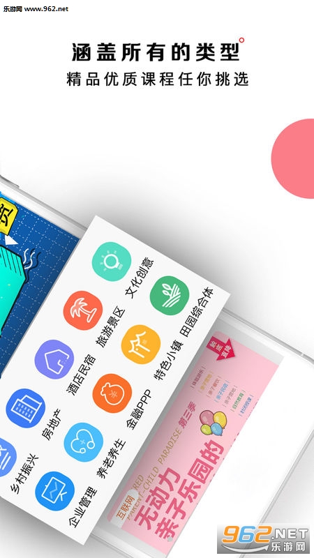 橙猫选课上的课程覆盖农业、地产、酒店民宿、旅游景区、文化创意、企业管理、养老养生、金融PPP、特色小镇、田园综合体等领域,海量课程、优选呈现。
