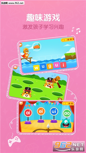 形式活泼:有别于传统的拼音教学,我们将课程和互动游戏巧妙地结合起来,让孩子在玩耍的过程中,不知不觉完成拼音启蒙。