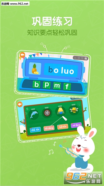 通过丰富童趣的互动游戏,引导孩子学习拼音字母、拼读规则,而且通过科学的步骤,帮助孩子巩固知识。