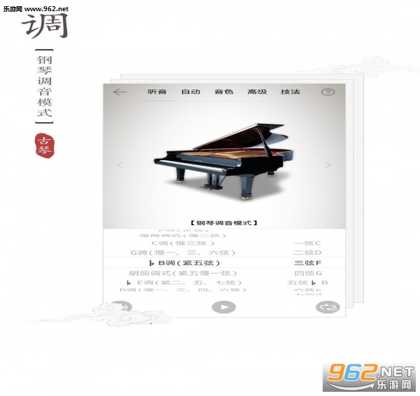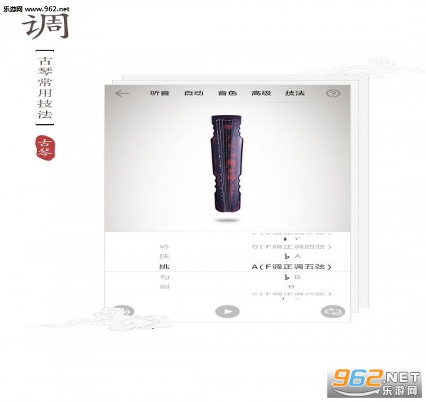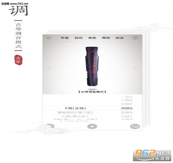 3、包含了非常多的古琴调式,适应各种乐谱的弹奏;