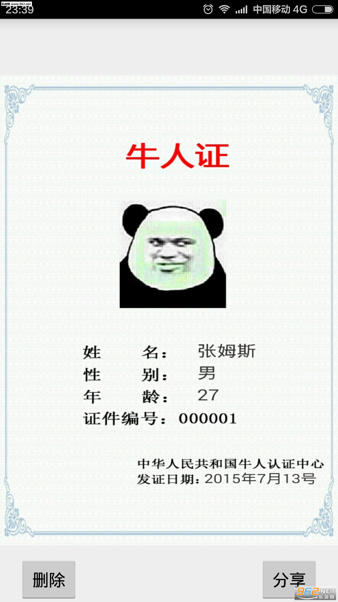 这是一款快速制作搞笑证件的工具,用户只要输入基本信息选择头像,就可以一键生成证件,分享到qq或者朋友圈去,快来试试吧!