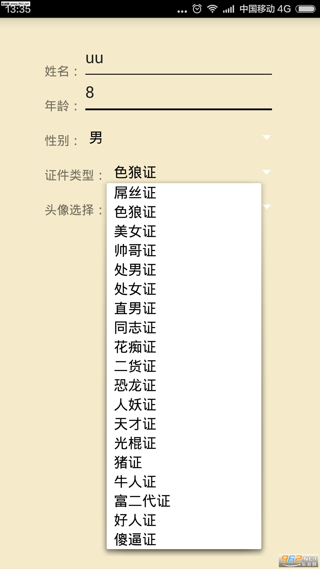 它的功能就是让你尽情恶搞朋友~你只要输入朋友的姓名信息,然后就可以快速制作搞笑证件。