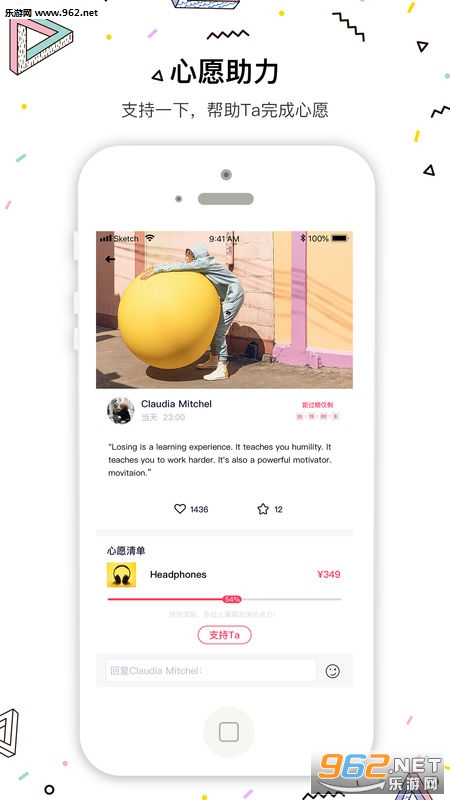 【送】平台其他用户在看到心愿后,可以用自己的方式(比如赠送礼物)帮助对方完成。