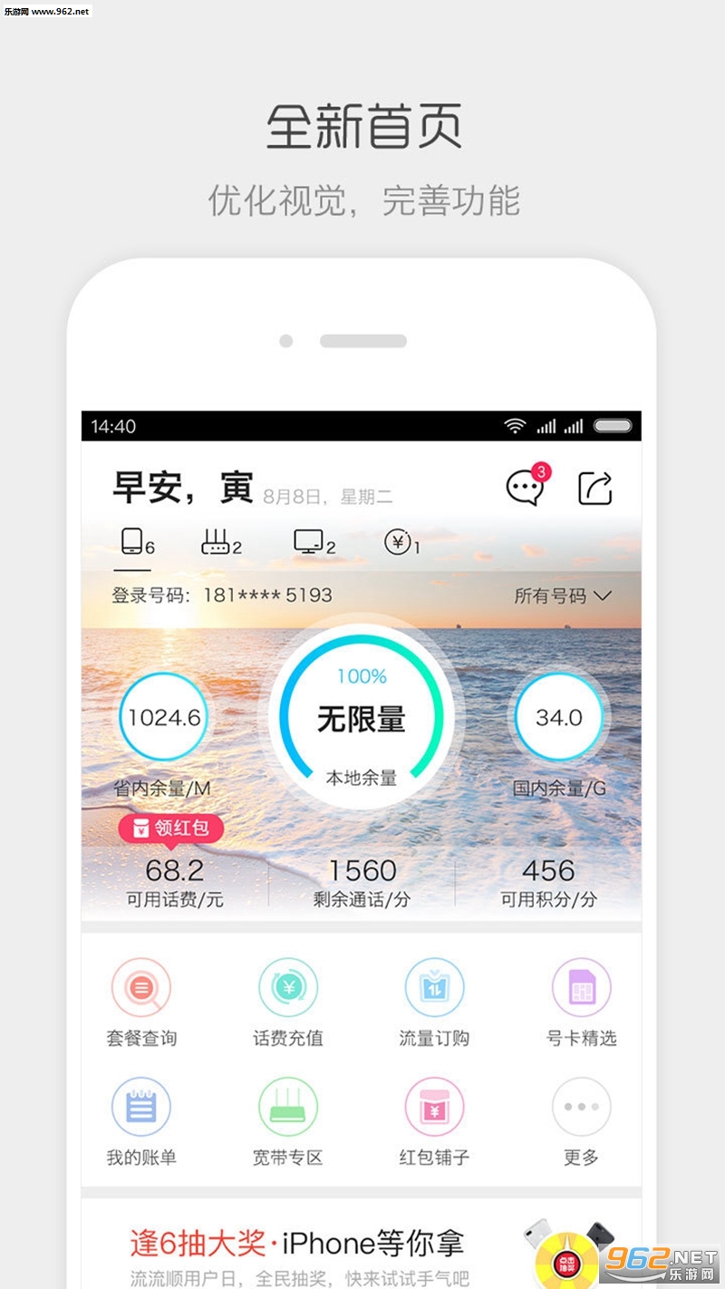 《流流顺安卓版》是一款手机掌上营业厅,可以为您查话费、查流量、订套餐等各类办理业务一应俱全,界面清晰明了,一站式服务,让你能够有一个省时又给力的使用体验,让用户用得开心放心,给用户带来极速的上网体验,你的贴心手机管家!还在等什么赶快来下载吧!
