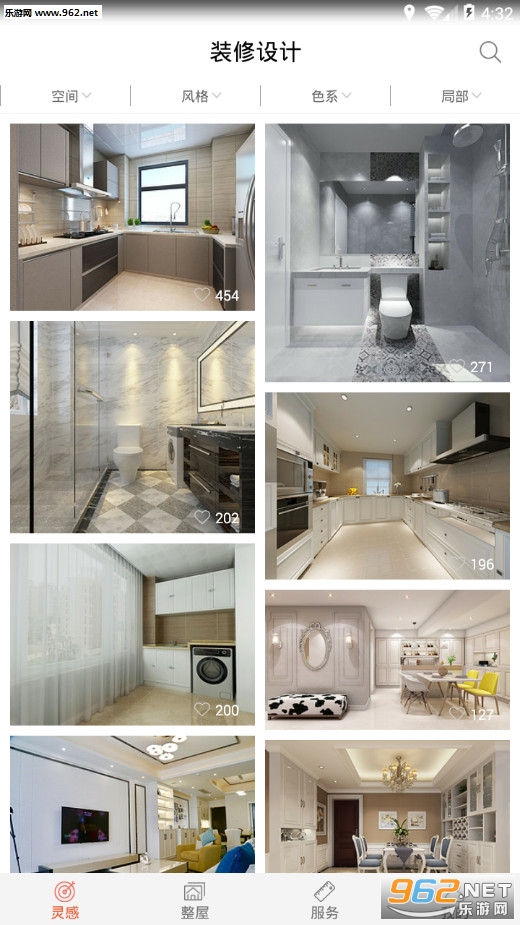 《装修设计》拥有超过两百万张装修美图,图片类型涵盖当今流行的各种装修设计方案和家居产品搭配,用户通过风格、空间、色系等选择,可以快速找到想要的装修风格。