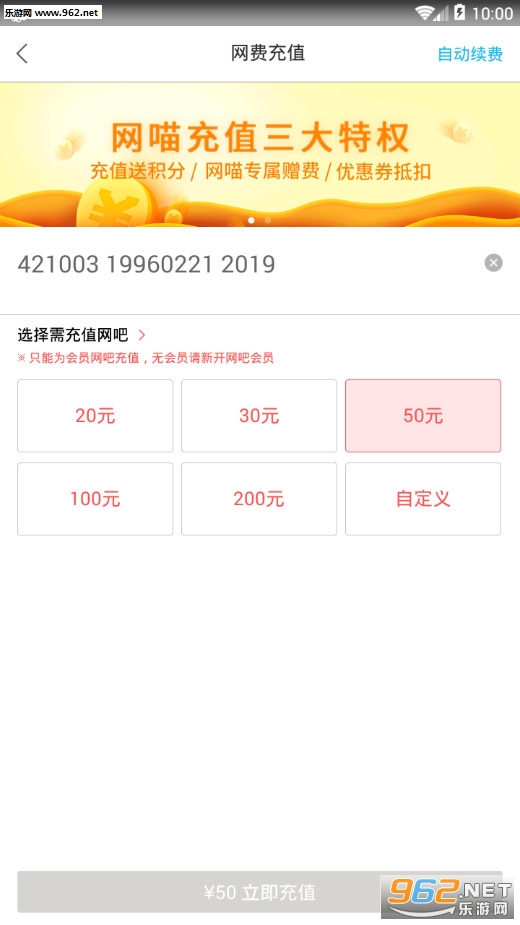 2、选择充值网吧、充值金额、支付方式进行充值后,支付成功。