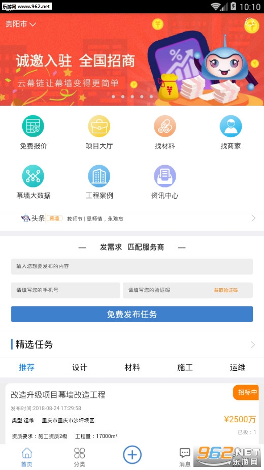 这是一款便民的购物、发布招募的电商平台,如果想要买建筑材料、想找建筑设计师,都可以去这个平台,上面你需要的东西都应有尽有!