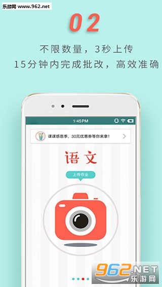 2.操作简便快捷高效:只需点击拍照上传清晰作业图片,十分钟内老师完成批改。