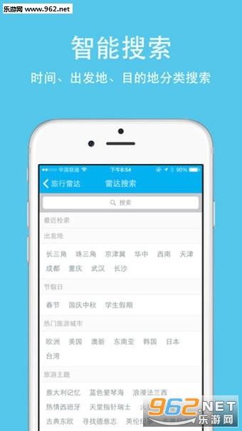 4、智能搜索:时间、出发地、目的地分类搜索。