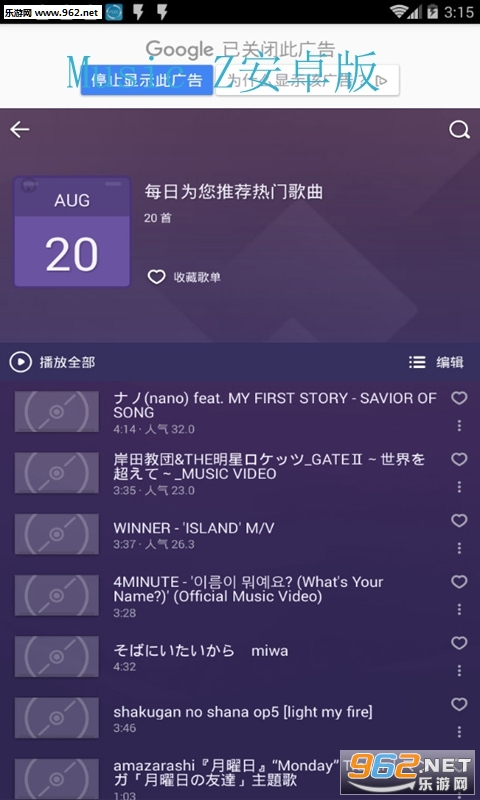 我们每天为您挑选最新的音乐,更专注于音乐而不是misc视频。