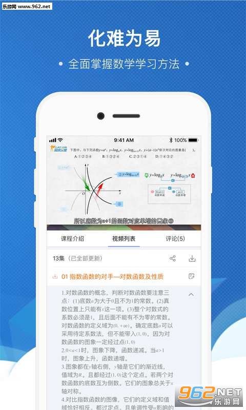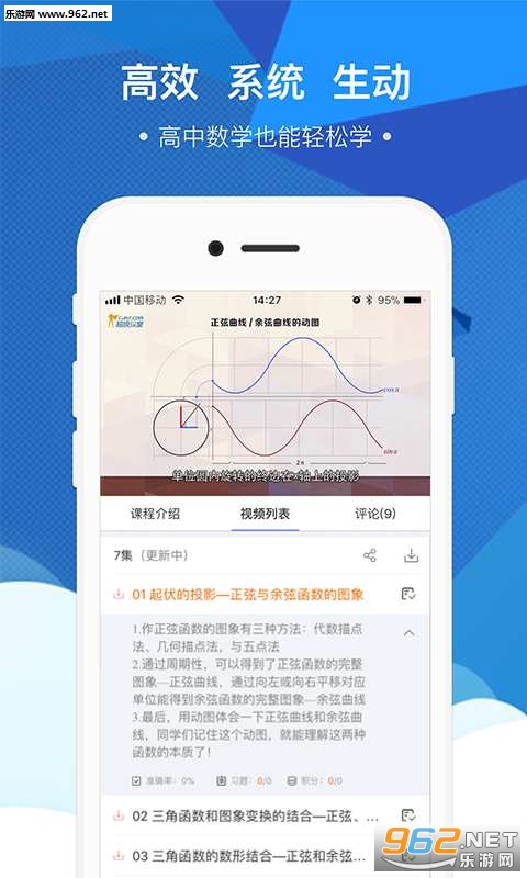精美流畅的动画演绎、简洁准确的台词语言、优雅的设计排版,让学生高效、系统、生动、轻松地学习高中数学。
