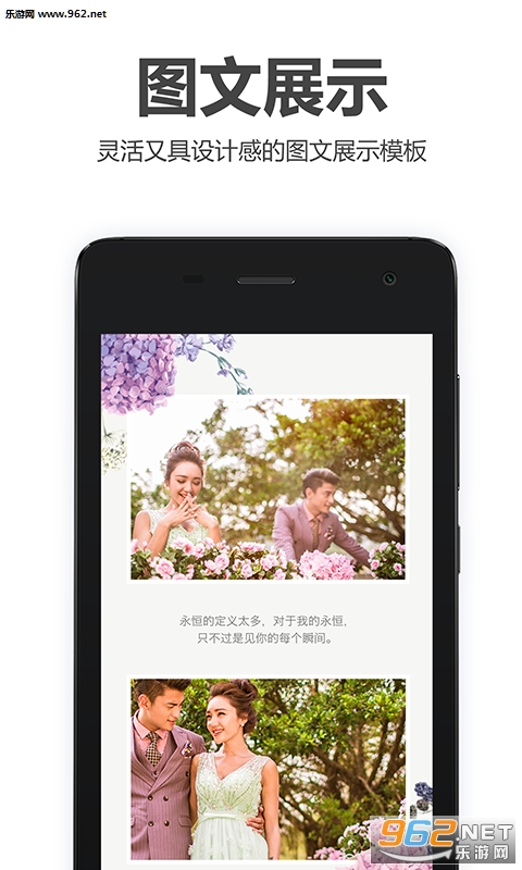 2.丰富的图文展示:灵活又具设计感的图文展示模块,为各种尺寸的照片设计