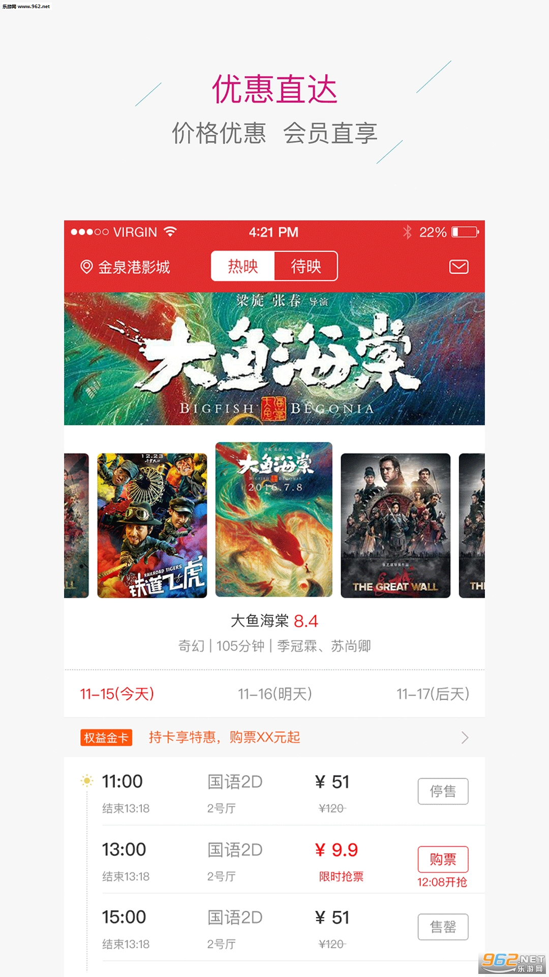 《金泉港影城app》是一款影院自营APP,用户一方面可以直接利用此平台快速了解身边的影院信息,相关的上线时间,另一方面可以之际利用app在线选购相关影院的电影票,非常方便,需要的小伙伴赶紧下载吧!
