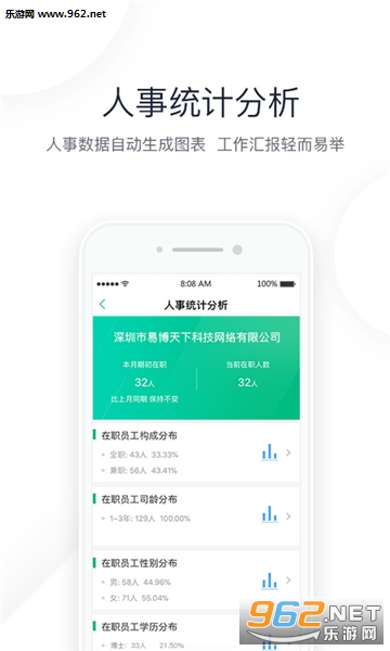 为中小型企业打造的人力资源管理APP,可以管理员工信息,安排和提醒人事日程安排,统计员工数据,了解企业发展趋势,帮助企业HR工作更加高效!