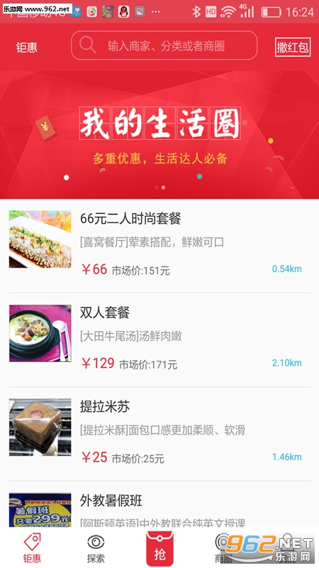 我的生活圈一键锁定周边一公里消费圈,可以快速发现周边钜惠产品及优质店铺,满足用户日常生活需求;平台每天都会发放现金红包,用户通过首页地图或探索页面领取;初此之外,用户还可通过平台探索页面分享周边生活消费体验,是集派送现金红包与优惠吃喝玩乐购于一体的娱乐化生活服务平台。
