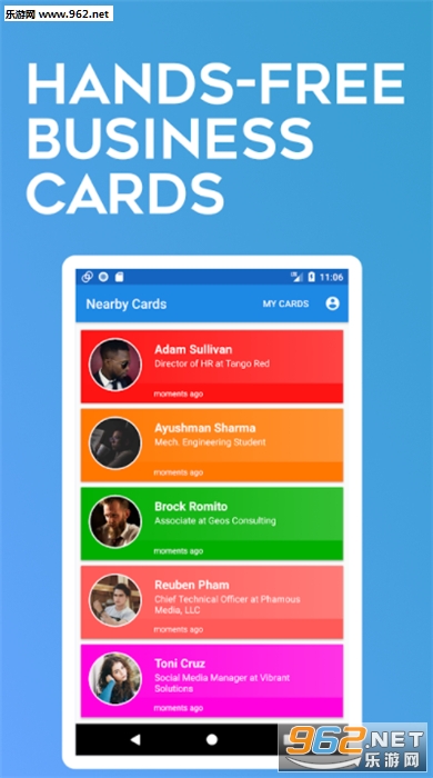 CardCast将您的名片广播到房间。给每个人你的卡,并收集附近的其他卡。网络从未如此简单。