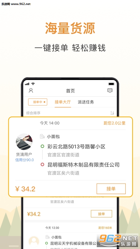货源多,新运单实时语音提醒,接单方便。