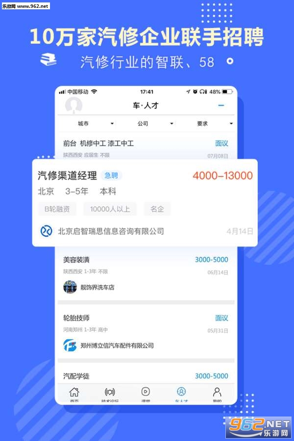 4.人才招聘:与全国10万家专业汽修机构深度合作,在平台发布人才招聘信息,让优秀学员无后顾之忧,轻松找到优质的工作机会。